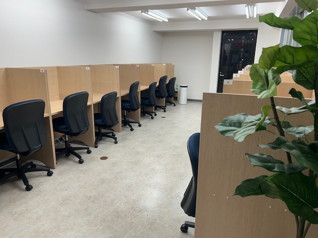 勉強・デスクワークに適した自習室です。発話禁止のため静かな空間となっています。年中無休で365日6時から23時までお好きな時間にご利用いただけます。